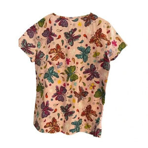 B SCRUBS SIZE MEDIUM PINK SCRUBS WITH BUTTERFLIES