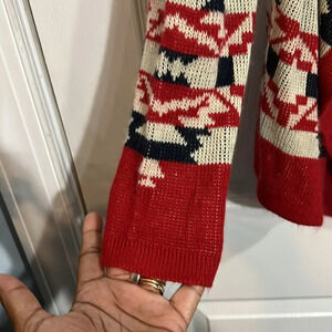 B SHARP Women’s Cardigan Sweater Size Large Medium - Aztec Design In red, black and white. Preloved but in great condition.