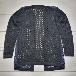 B Sharp Y2K Crochet Open Knit Cardigan Black Blue Geometric Mohair Large
