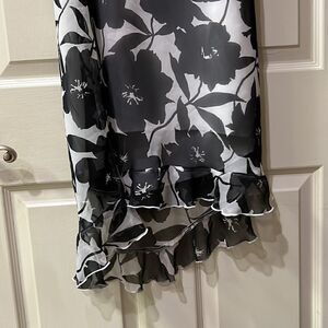 B Smart Girl’s 11/12 B/W Dress with Cowl Neck, and Back Tie, and Ruffled Bottom; Sheer with liner