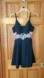 Like new stunning black dress by B Smart. Size tag cut out so please check measurements below. Molded bra inside. Adjustable spaghetti straps. Floral embroidery at middle. Zip back. Mesh panel between bust. Skater style full skirt. Approx 28in from point of bust triangle to hem ( because of adjustable straps), bust (P2P) 15.5in when flat. Very stretchy so possibly like a polyester. Listing as a small
