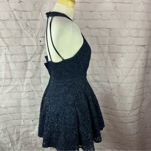 B. Smart Navy Fit and Flare Halter Mini Dress sz 1 lace overlay sparkle