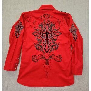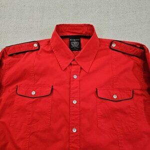B Society Comfort Fit Long Sleeve Shirt Men's XL Blood Red Embellished Metal EUC