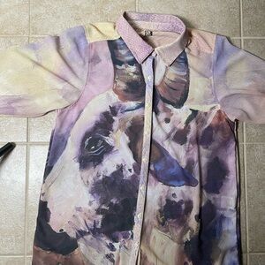 B Studio Art Cow Bull Farm Animal Sheer Long Button Down Cardigan Dress Size XL