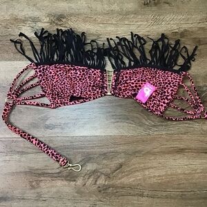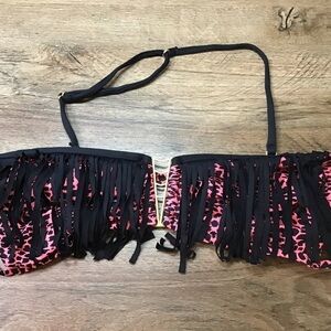 B Swim Bikini Top Fringe Cheetah Animal Print Black Orange M