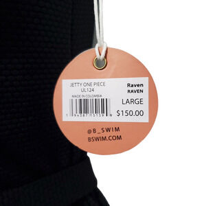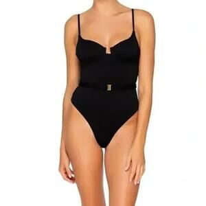 B. Swim Jetty One Piece Swimsuit Black Belt High Leg size large. A new classic, the Jetty One Piece features a sleek underwire design with a removable belt. Add in high cut legs and cheeky coverage and you've got the perfect one piece. No cups. Style: UL124RAVEN