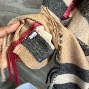 features the brand's iconic beige, black, and red plaid pattern, often referred to as the "Nova Check" or "Archive Beige" check.