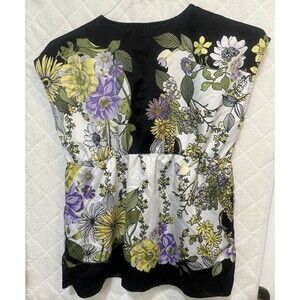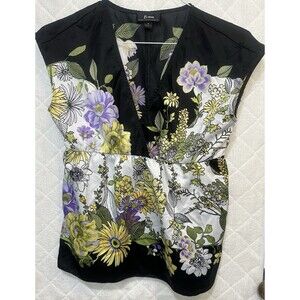 B Wear Byer California Woman's Floral Satin Look Blouse Medium Empire Waist