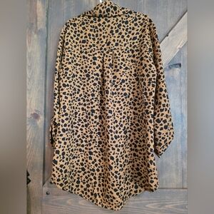 B Wear Cheetah Print Button Down Tunic Style Blouse Size XS