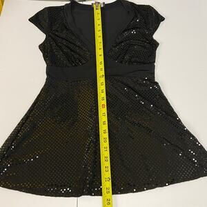 B Wear VTG Black Sequin Baby Doll Whimsigoth Witchy Goth Cap Sleeve Top Medium