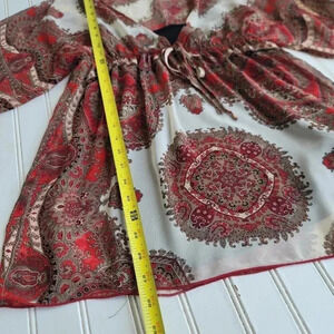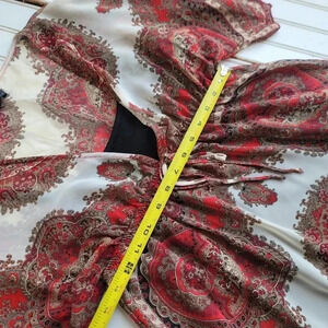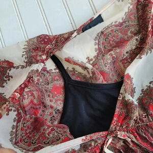 B Wear Women's Paisley Short Sleeve Sheer Blouse Red Ivory Black Tank Size M