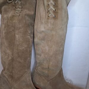 B/ X By Bronx Camel Suede Tie Up Knee High Boots 40