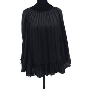 B Yu Made In Italy Womens Ruffle Bell Long Sleeves Boho Top Black Small