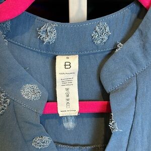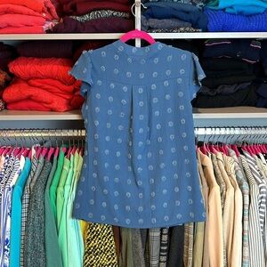 B blue with fringe white dots ruffle cap sleeve v neck blouse size S​