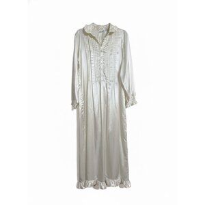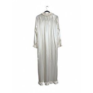 B by Barad Vtg 1980s Ivory Satin Ruffled Princess Length Night Gown Nighty Sz M