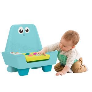 Interactive Chair: A toddler-sized chair that comes with buttons, music, sounds, lights, and educational delights! (3 AA batteries are included.) Fun Features: Discover fun sounds with the light-up tablet, press on the bear for silly squeaks, or push down on the colorful buttons, then pop 'em back up! Educational Play: This interactive chair helps children learn about letters, numbers, and shapes. Storage Space: Kids can store tiny treasures right underneath the seat. Age: The Little Learners Chair is recommended for toddlers 12 months +