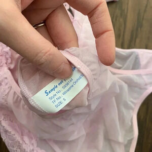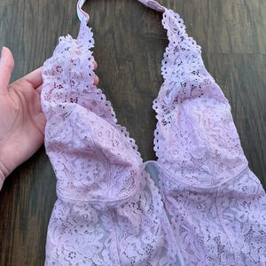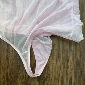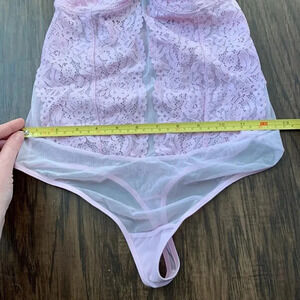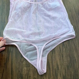Lavender/light pink bodysuit. Size small never worn. Was a sample piece, corset style top. No wires or padding. Sheer back and thong bottom
