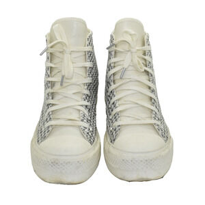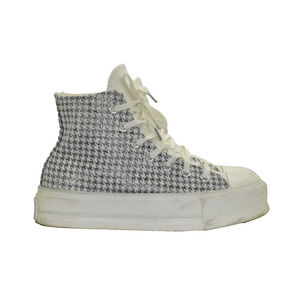 AUTHENTIC CONVERSE CHUCK TAYLOR ALL STAR Women's SilverEgret Houndstooth Pattern High Top Platform Sneakers