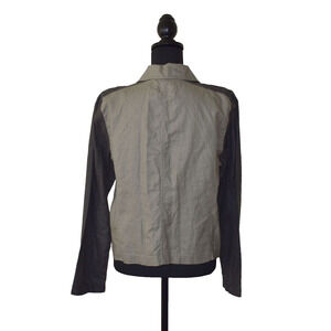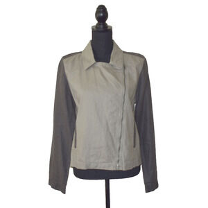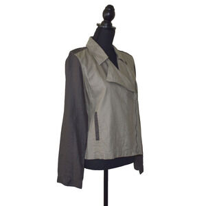 B0 Auth EILEEN FISHER Lightweight Waxed Coated Linen Asym Zip Moto Jacket Size L