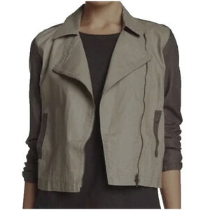 AUTHENTIC EILEEN FISHER Lightweight Waxed Coated Linen Asymmetrical Zip Moto Jacket