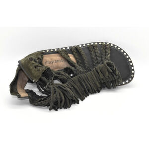 B0 Auth JEFFREY CAMPBELL Olive Green Suede Braided Straps Fringe Sandals Size 6