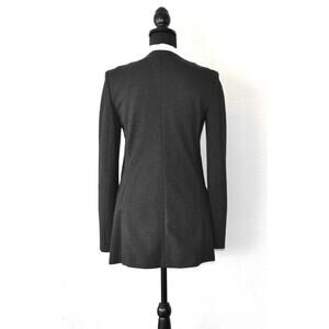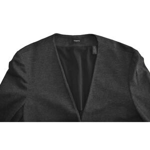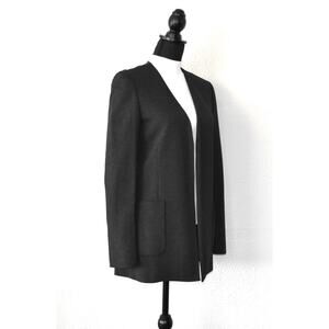 B0 Auth THEORY Charcoal Black Open Front Half Lined Long Jacket Size 6