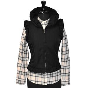 AUTHENTIC LAFAYETTE 148 NEW YORK Black Ruffled Collar & Sleeve Sturdy Zippers Puff Vest