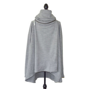 NEW AUTHENTIC AAKASHA Grey Loose Zipper Removable Cowl Neck Collar Pullover Sweater