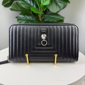 B120 💎✨Authentic Fendi DotCom LOng Zip Black Leather Wallet