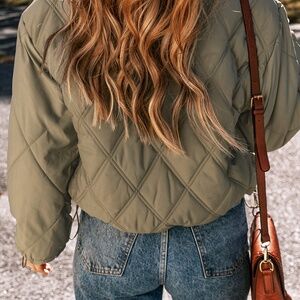B133 Jungle Green Teddy Collor Flap Pockets Quilted Puff Jacket