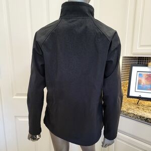 EUC. Stay stylish and comfortable with this sleek black jacket. Perfect for any winter occasion. 3 pockets on front of jacket and 2 open storage pouches on the inside as pictured. There is a slight pattern to this jacket. Please see the close up picture. Very warm coat. Size Large. Approx measurements: 22" armpit to armpit, 25" length (front), 28" length (back). Thank you for visiting my closet. 7AR2525AB15