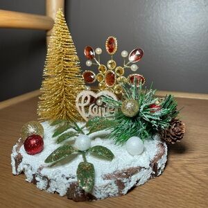 The pictures/lighting do not show off this beautiful design! It is stunning! Beautiful colors. Sparkly. So joyful for the holiday season and perfect for a living room, office desk, bathroom, kitchen, bedroom… anywhere to bring the holiday joy. It’s the perfect gift for yourself, coworker, friend, family, hostess for the holidays etc!