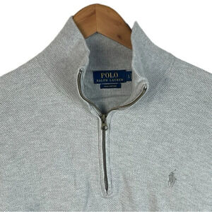 B15 Men’s Polo Ralph Lauren Designer Pima Cotton Waffle Knit 1/4 Zip Sweater L