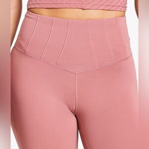 • Waistband: Wide, elastic waistband; seaming details