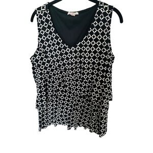 Excellent Condition P2p 23” Lenght shoulder to bottom 26.5” Chic tank top with a bold black and white pattern. Ideal for versatile styling.