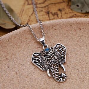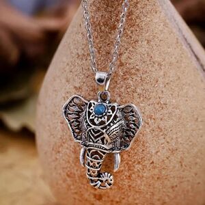 🐘B175🐘 BOHEMIAN BLUE STONE ELEPHANT UNISEX PENDANT NECKLACE