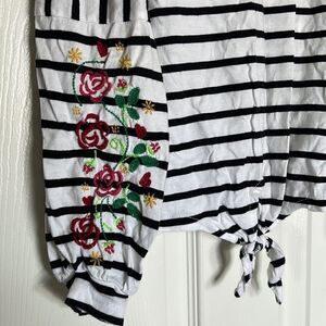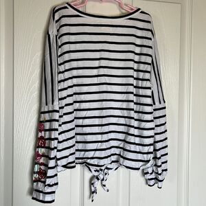 🌟B1G1 free Harper canyon striped floral long sleeve tie front top size L