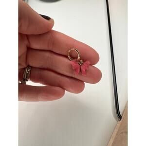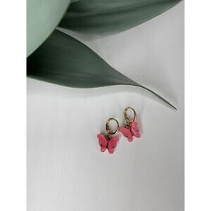 B1G2 FREE 🍁 24K Gold Plated Pink Butterfly Earrings Huggie Hoops Dangle