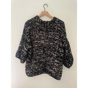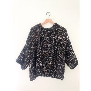 Stay cozy and stylish in this H&M chunky knit open front cardigan sweater. Featuring a marled black and cream pattern, this oversized knit offers a relaxed fit that’s perfect for layering. With its slouchy sleeves, soft texture, and versatile design, this cardigan is an easy go-to for cooler weather.