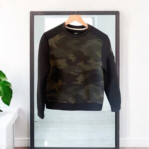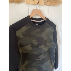 B1G2 FREE 🍁 NWT DKNY Camo Sweatshirt XS Black Fleece Sherpa Crewneck Utility