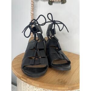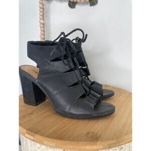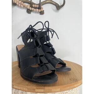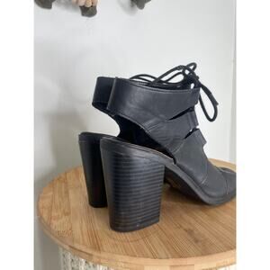 B1G2 FREE 🍁 Soda Black Caged Peep Toe Heeled Sandals Size 7.5 Slingback Lace Up