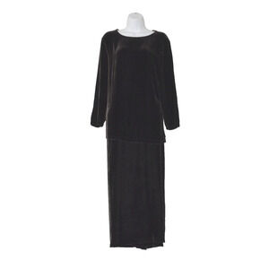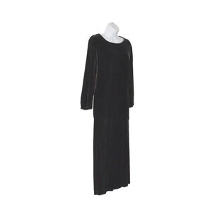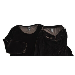 AUTHENTIC EILEEN FISHER Brown Velvet Long Sleeve Blouse And Wrap Skirt 2 Pc Set