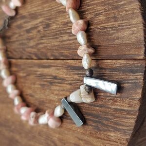 B203 pearl Hematite and pink lovestone bracelet