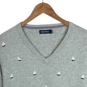 B21 Men’s Nautica Brand Preppy Sailboat Print V Neck Pullover Sweater XXL