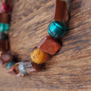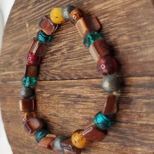 B2229 mixed amber and precious stone gloss beaded stretch bracelet