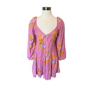 B23 FREE PEOPLE Francesca Mini Dress Floral Dawn Rose Combo SMALL NWT Sweetheart