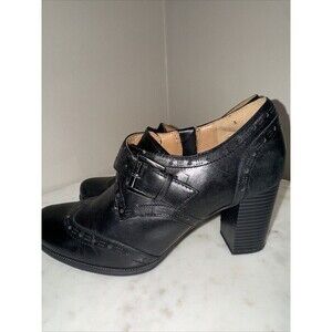B25 Clarks Black Artisan Ankle Heel Eyelet Slip On WingTip Adjustable Strap 8
