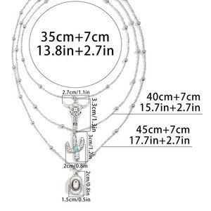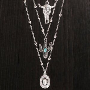 B253 Silvery Western Steer Cactus Pendant Adjustable Multi Layer Necklace