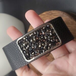 B2637 glitzy black geode spackle sparkle leather bracelet high end well made!