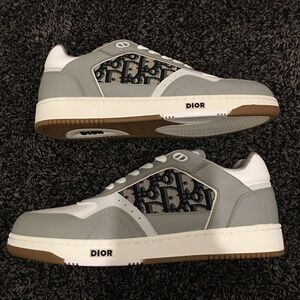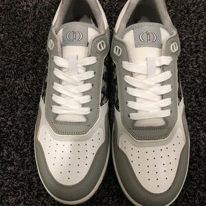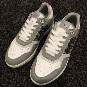 The B27 low-top sneaker is already a House essential. Crafted in gray and white smooth calfskin, the style is adorned with beige and black Oblique jacquard inserts on the sides. The sneaker is enhanced with CD Icon eyelets as well as numerous hallmark details on the two-tone rubber sole, tongue and back. The low-top sneaker will enhance any favorite outfit.